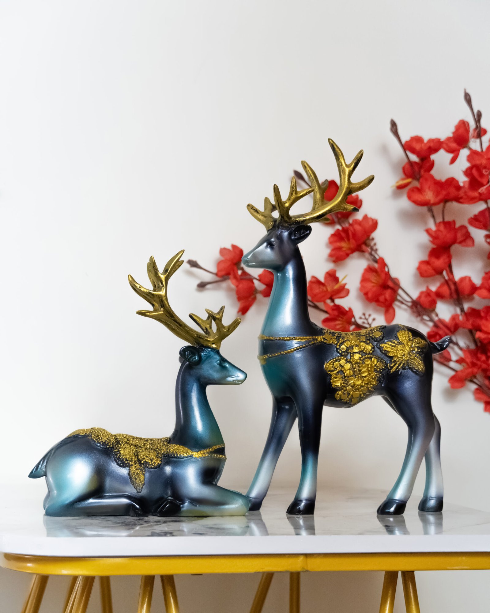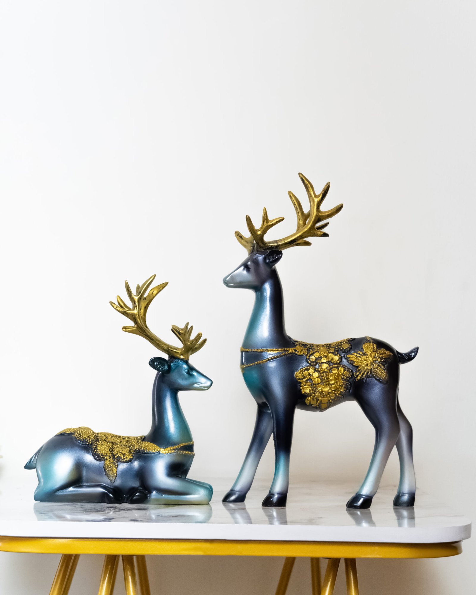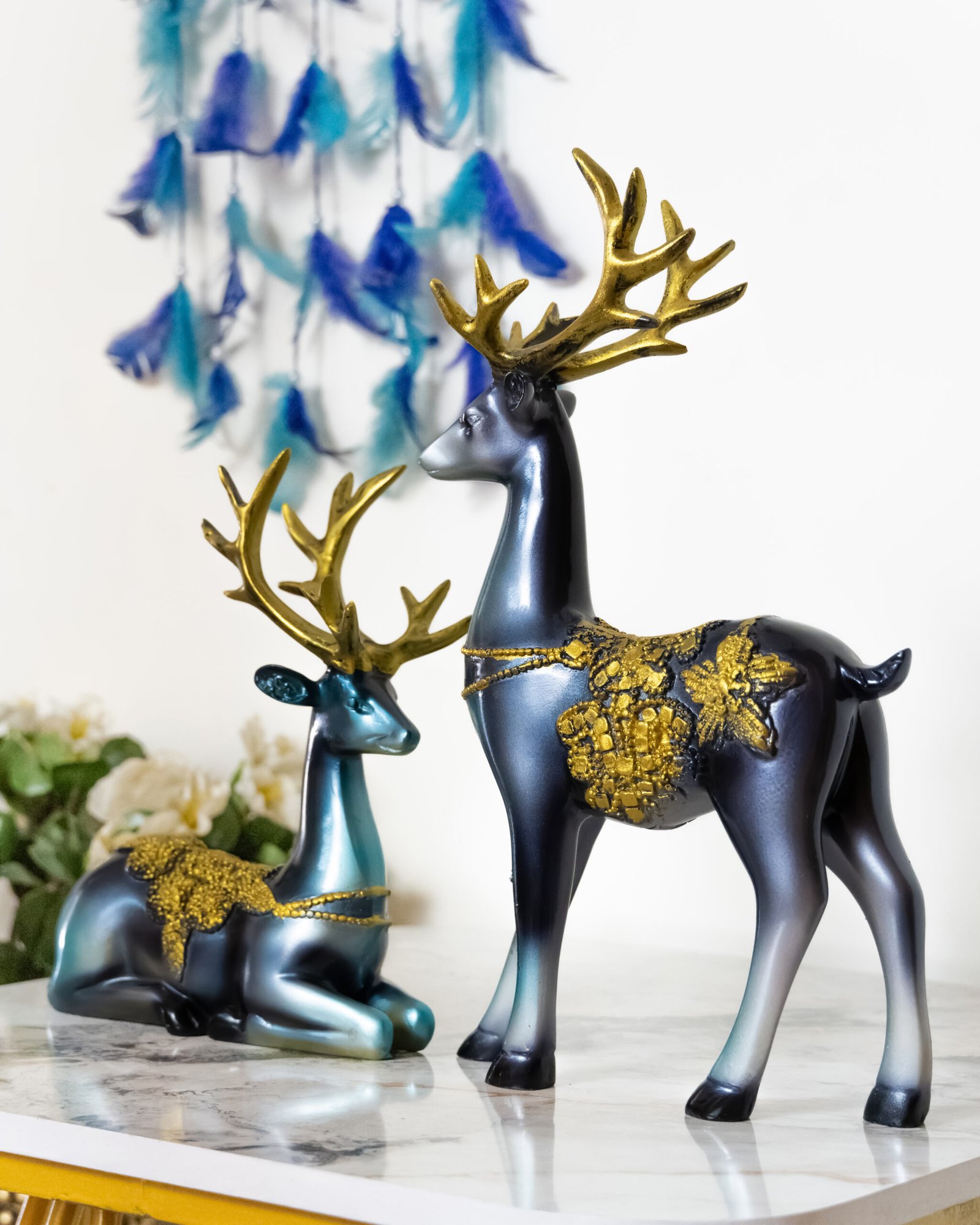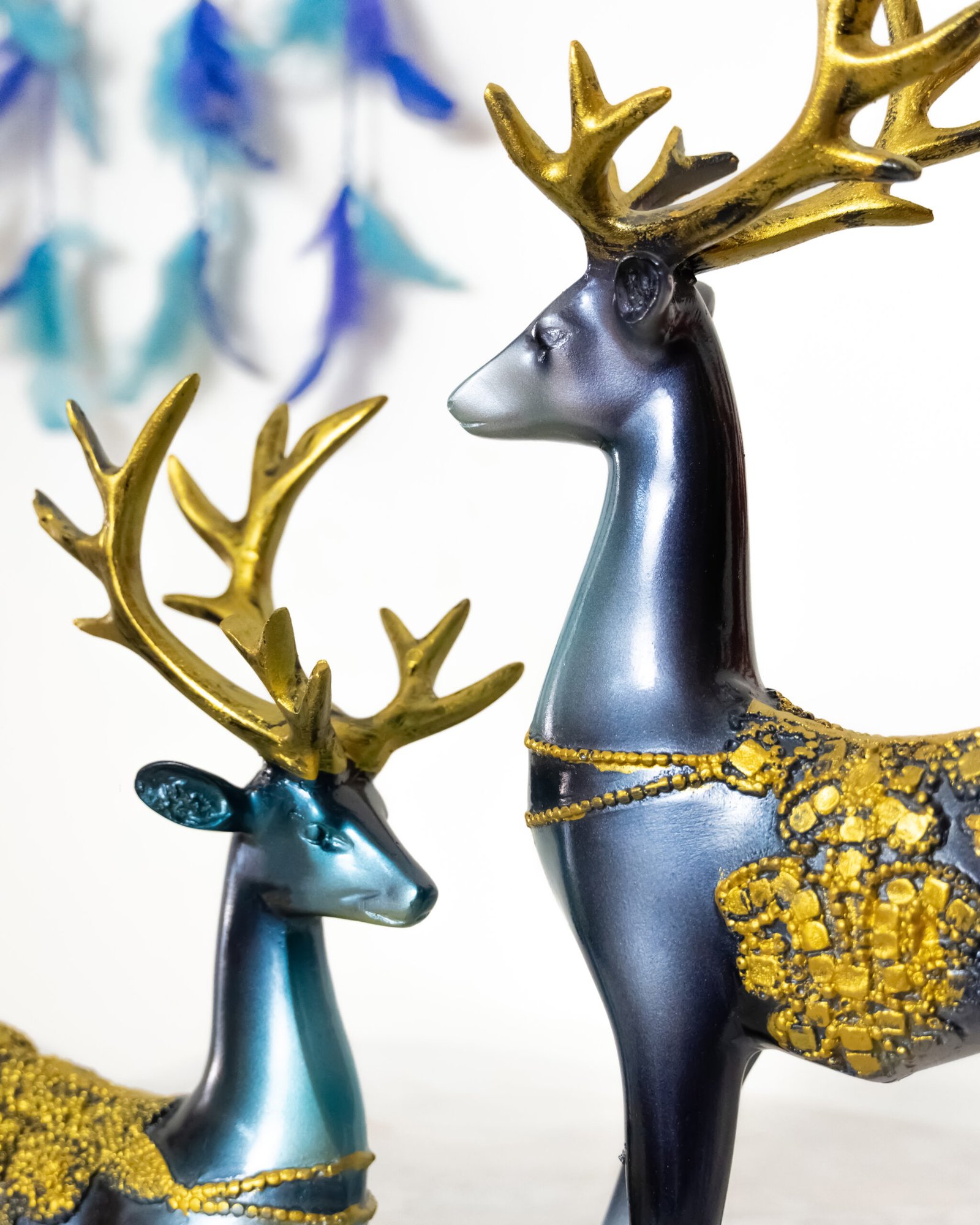 Our pair of deers having sleek metallic blue finish with gold accents.