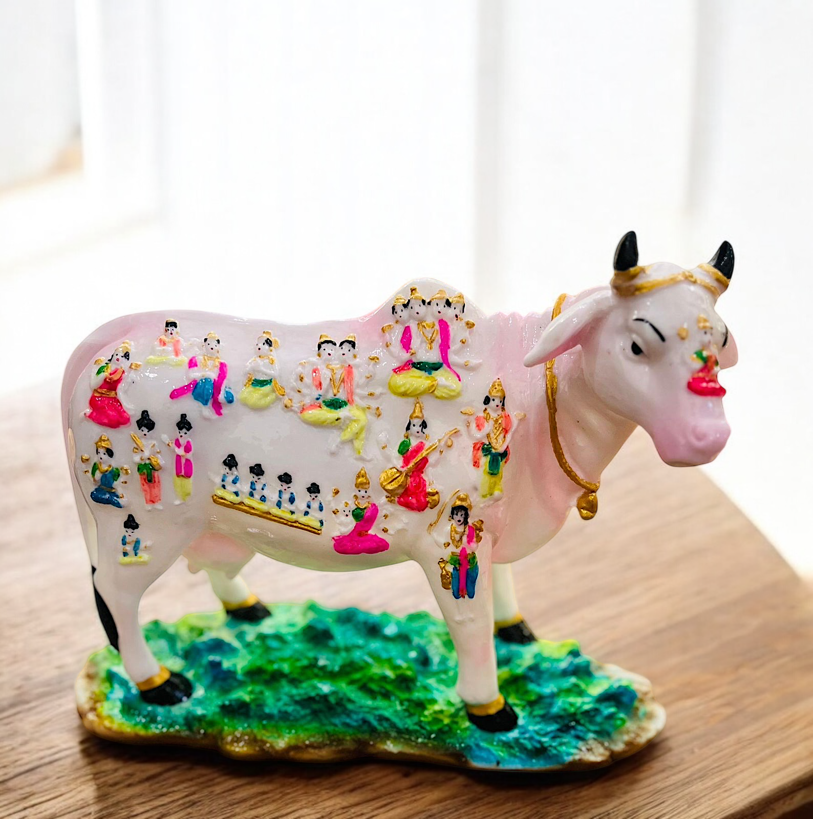 KAMDHENU COW FULL FILL WISHES OF HUMAN BEING , lT IS ALSO SYMBOL OF ANNAPURNA.The Kamdhenu cow, also known as Surabhi, holds a revered place in Hindu mythology and spiritual tradition.