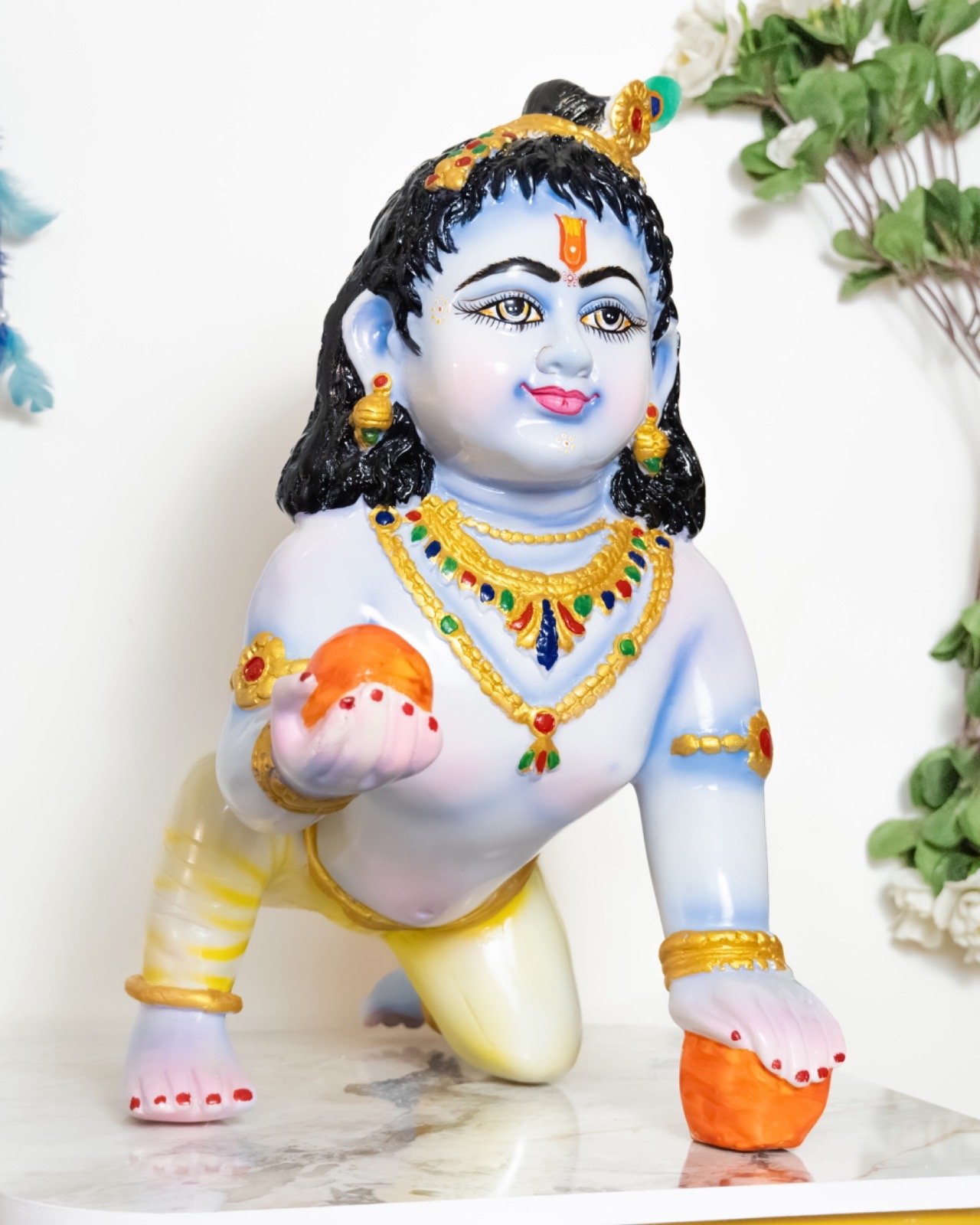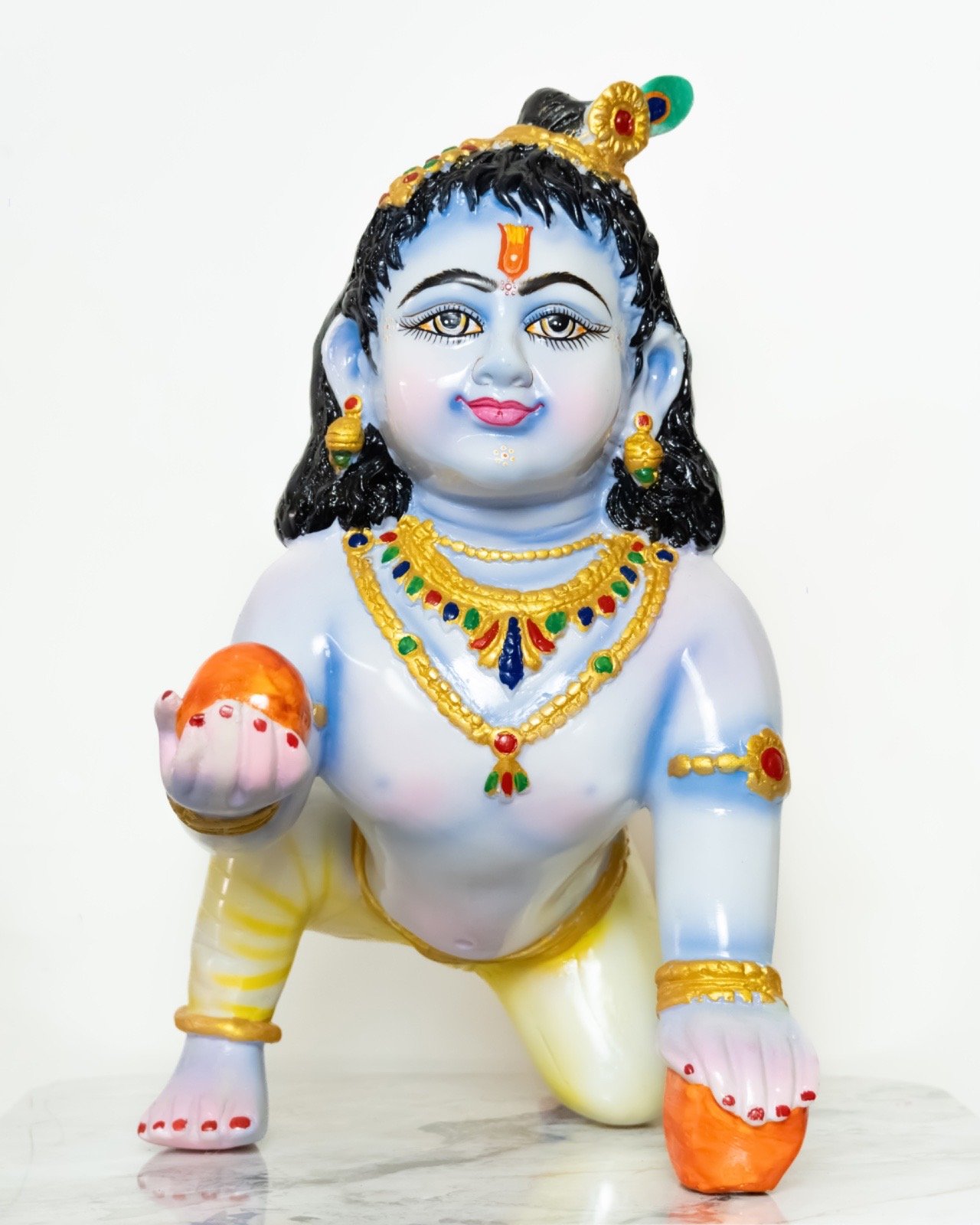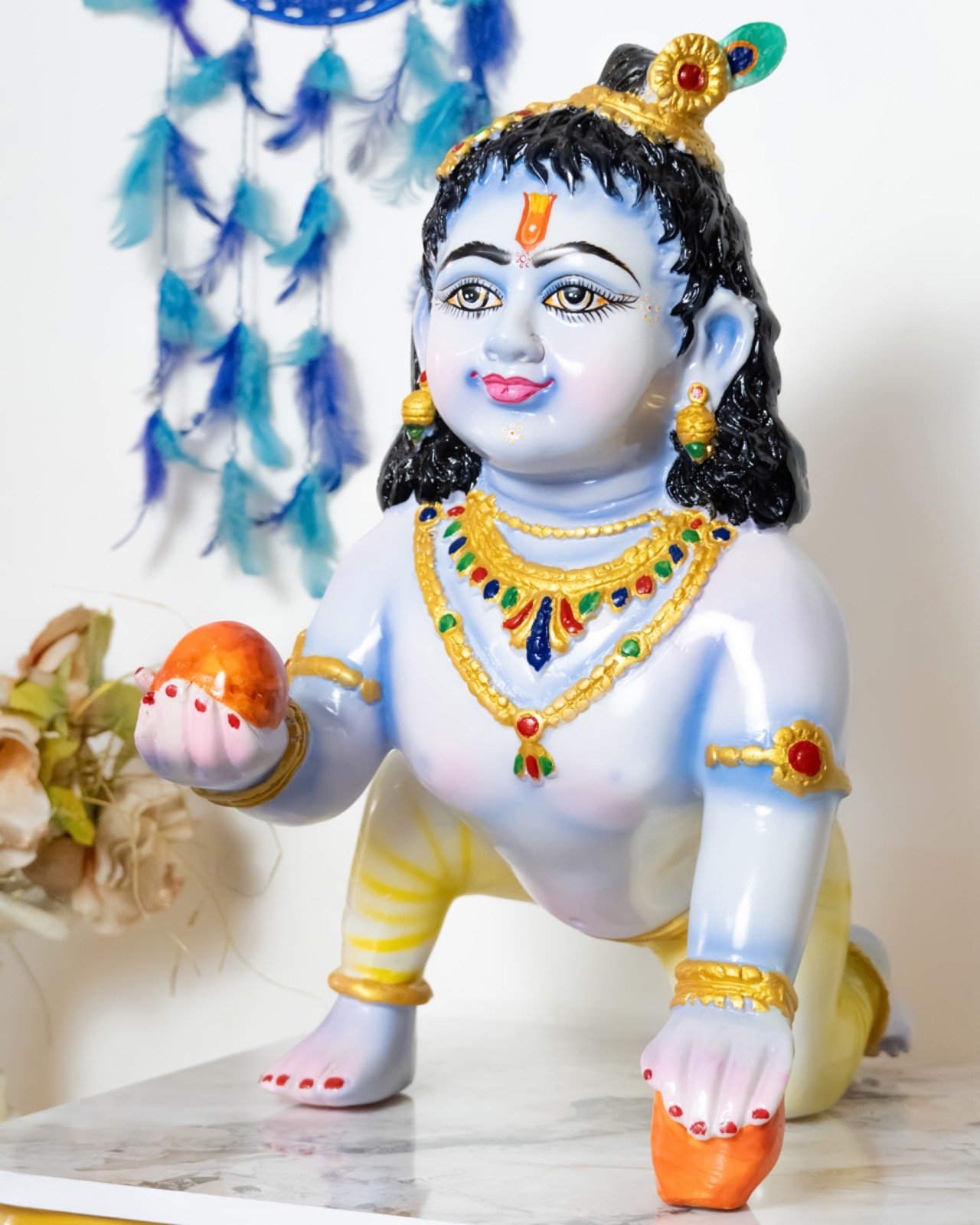 This beautifully hand crafted matki krishna idol is the embodiment of love and divine joy that destroys all pain and sin