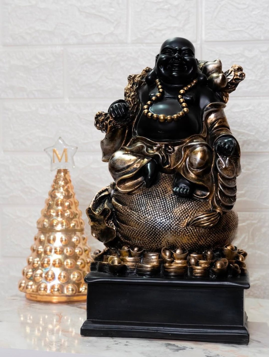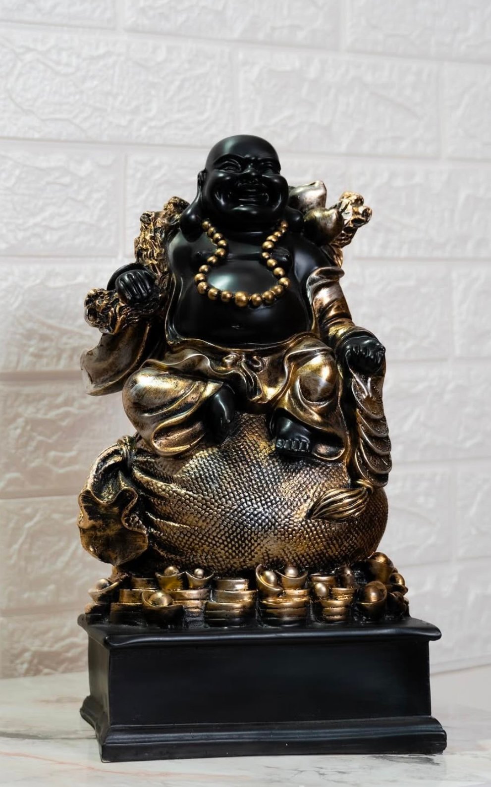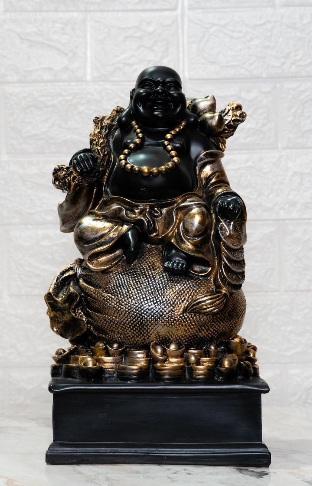 Laughing Buddha is known for his loving and friend nature. The Laughing Buddha statue is traditionally portrayed as a fat, bald and robe wearing monk carrying a sack and prayer beads.