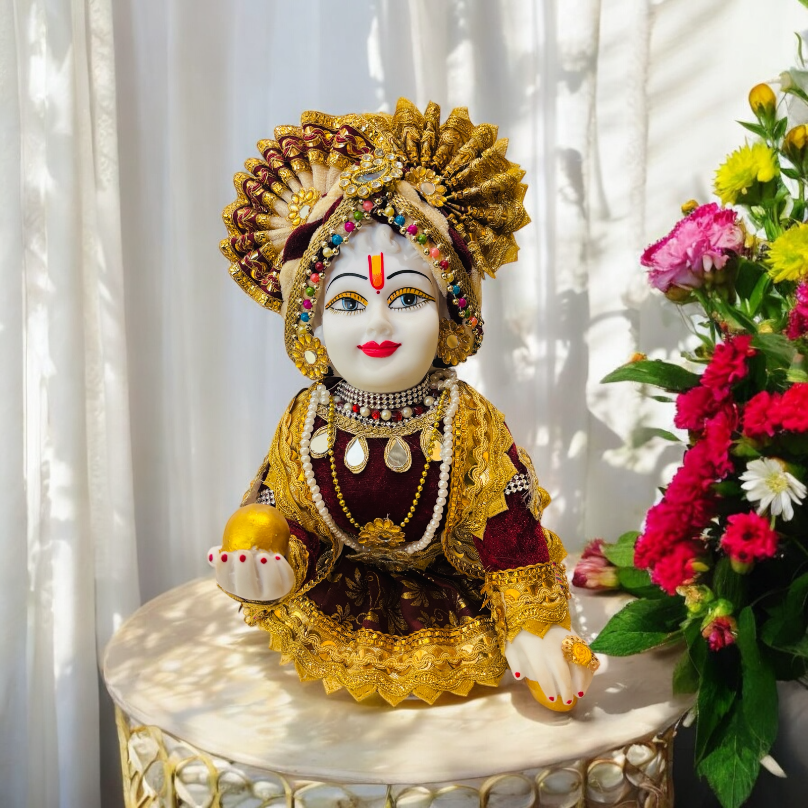 This beautifully hand crafted matki krishna idol is the embodiment of love and divine joy that destroys all pain and sin
