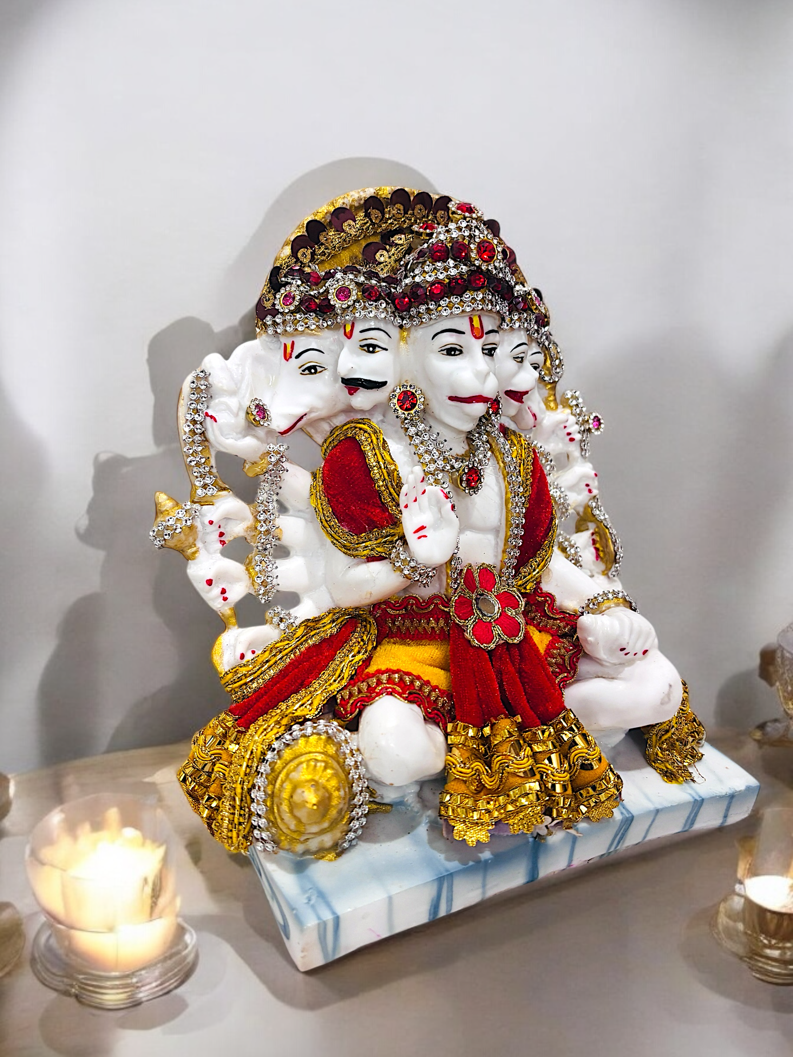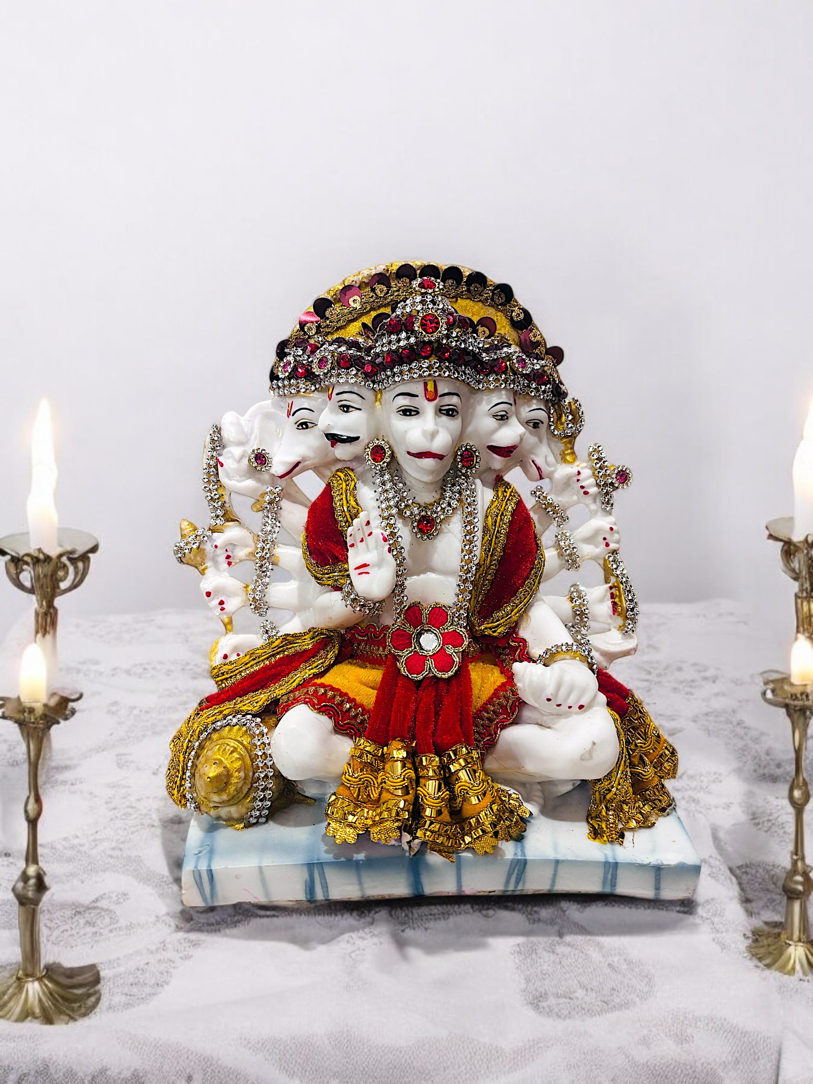 The statue depicts Hanuman with five faces, each representing a different aspect of his power and divinity.