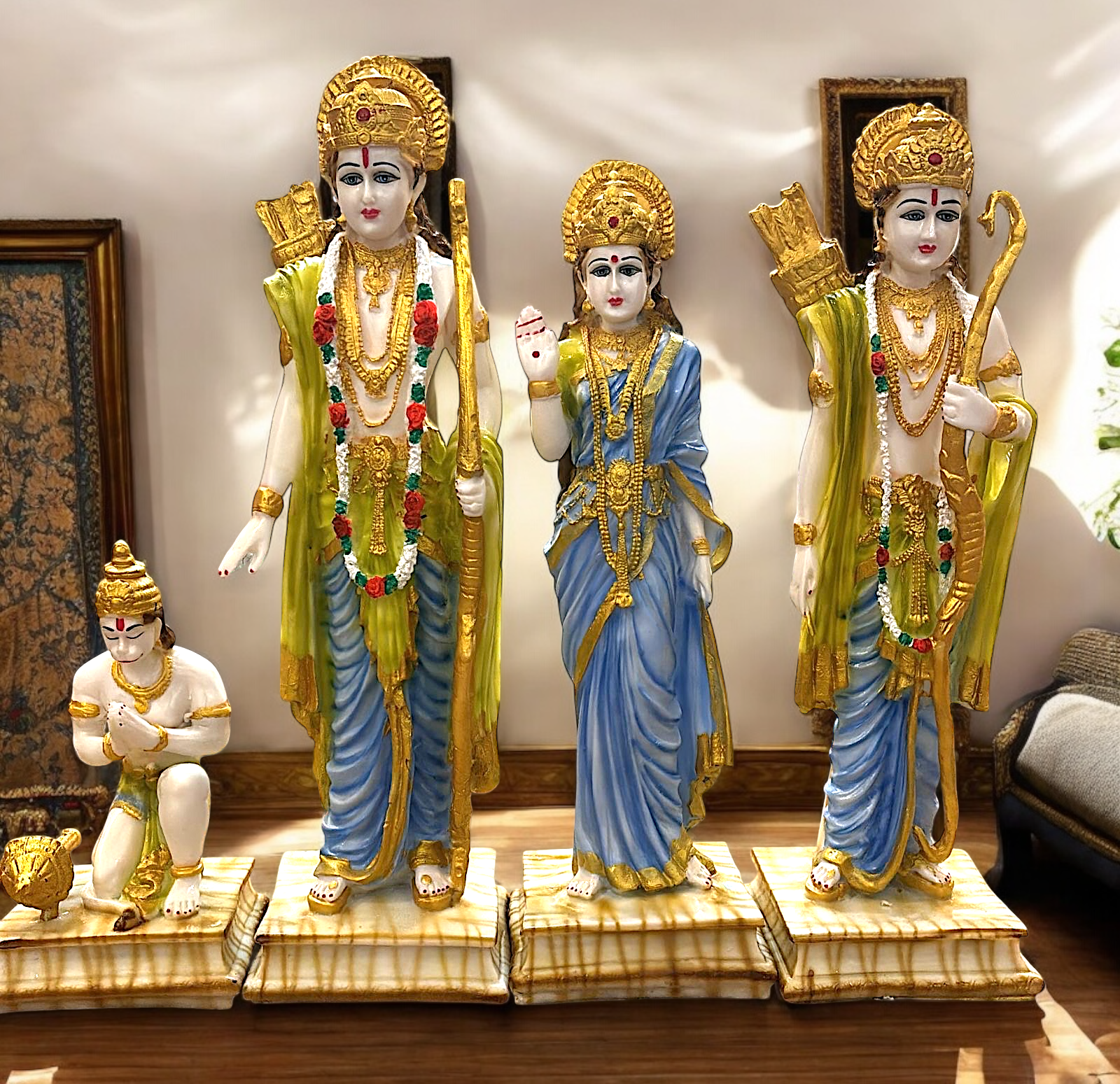 Size: RAM JI(13*13*46.5), SITA JI(13*13*41), LAXMAN(13*13*43.5), HANUMAN(13*13*22)